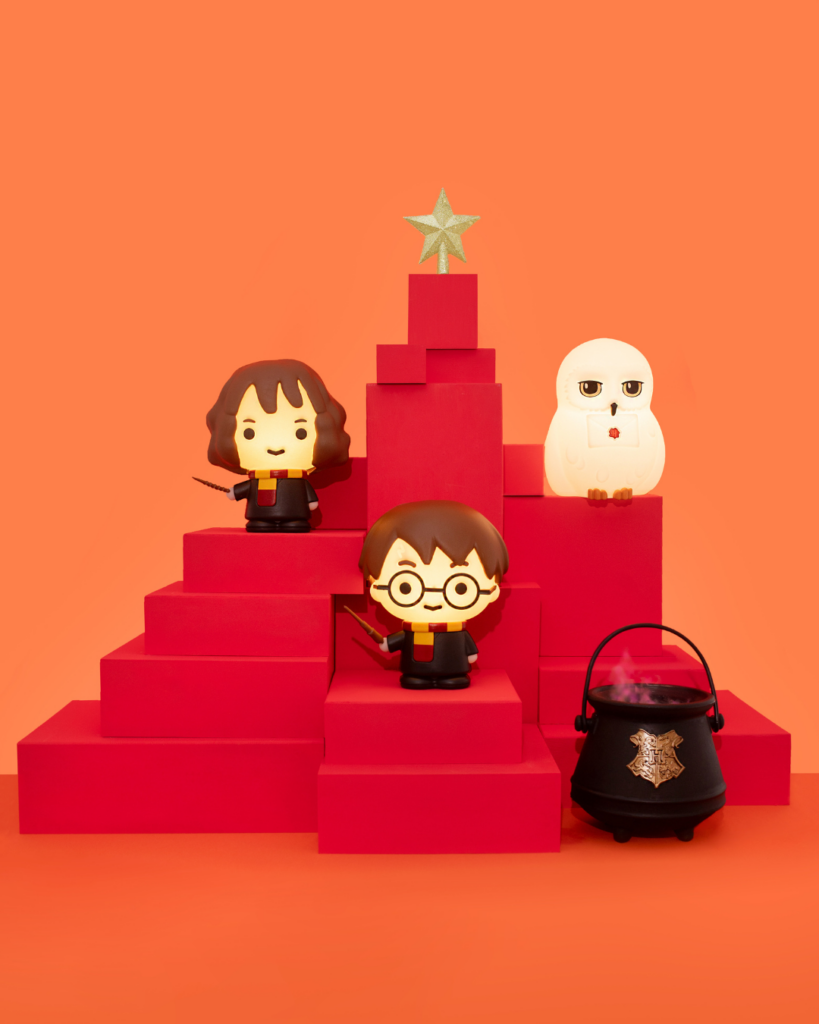 Cheirinho de Natal e muita magia no ar! Sim, uma ideia cheia de encantos é uma árvore iluminada por Harry Potter, Hermione, Hedwig e até um Caldeirão com fumacinha colorida e o aroma que você quiser.