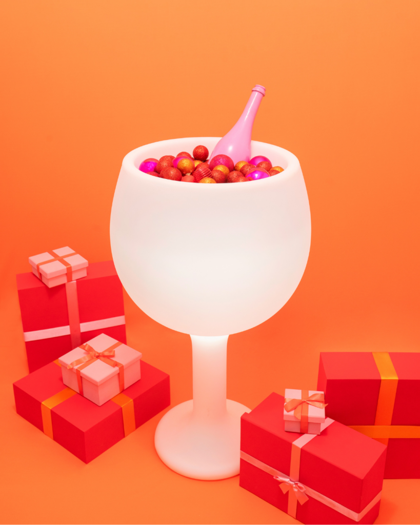 Pra finalizar, sugestão de presente para os mais festeiros: Champanheira Taça, com paredes duplas que deixam as bebidas geladinhas sem suar nem deixar o chão úmido.