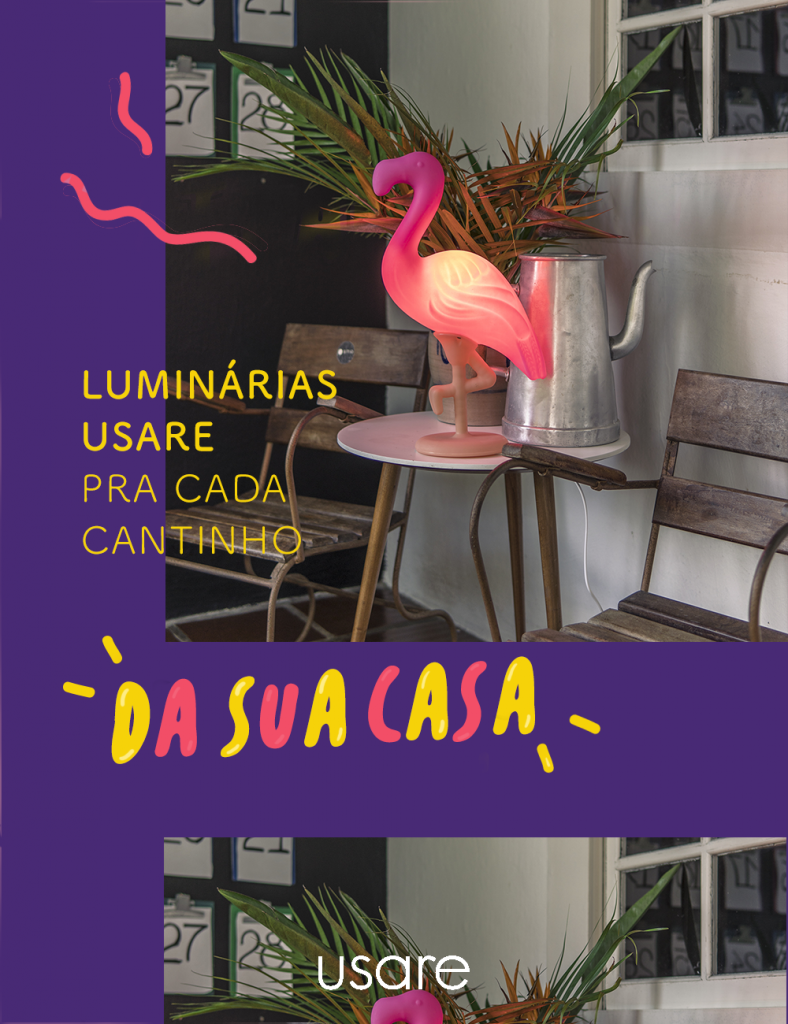 Uma sala super clean: concreto, madeira, branco cinza… e uma Luminária Flamingo estilosa, pra trazer um toque de cor. Uma cozinha mais fun, super divertidona,…